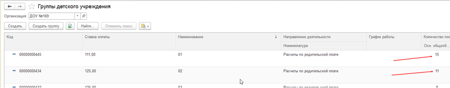 Для того, чтобы убедиться в том, что перенесены все дети по каждой группе, обратите внимание на численность в справочнике Группы детского учреждения.