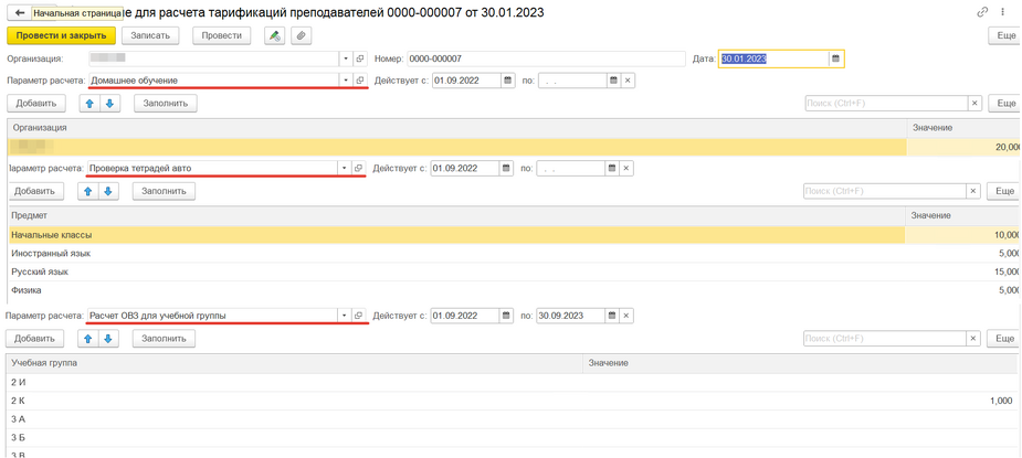 В данном справочнике находятся заполненные документы с параметрами расчета, которые необходимы для расчета тарификации в самом документе «Тарификация СОШ»(рис.2)
