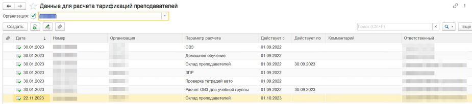 В разделе «Тарификация» есть справочник документов «Данные для расчета тарификации преподавателей»(рис.1)