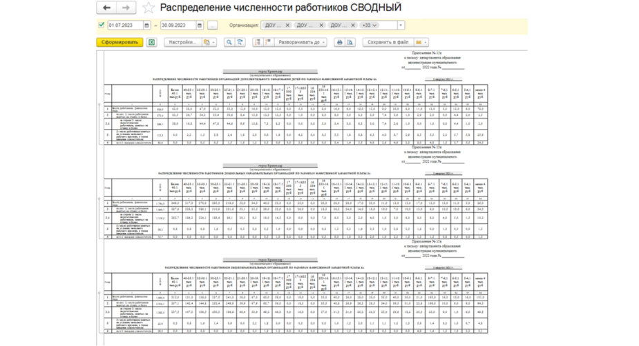 · Распределении численности работников дошкольных образовательных организаций по размерам начисленной заработной платы за период по диапазонам заработной платы;