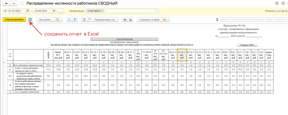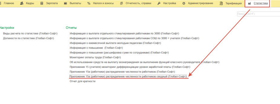 Выбираем отчет Приложение 15а (работники) распределение численности работников или Приложение 15а (работники) распределение численности работников сводный (рис.1)