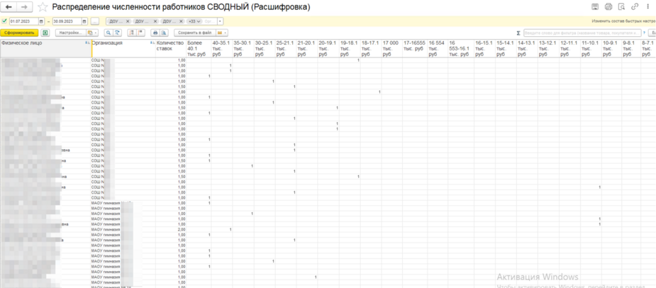 · Распределении численности работников общеобразовательных организаций по размерам начисленной заработной платы за период по диапазонам заработной платы.