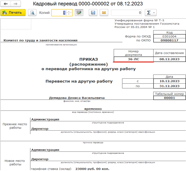 Зачастую бывает так, что пользователь меняет номер документа, чтобы он отображался в печатной форме, но для этого достаточно установить необходимый номер в поле «Печатать как» (рис.1), и в печатную форму попадет необходимый номер (рис.2)