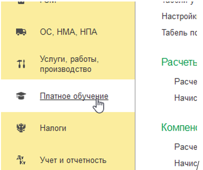 в панели разделов программы 1С. Данный раздел является основным местом работы бухгалтера, отвечающего за родительскую плату, в программе.