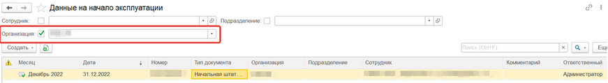 Начальная штатная расстановка содержит в себе все данные трудоустроенным сотрудникам с указанием их Ф.И.О., вида занятости, датой приема, подразделением, должности, всеми начислениями и надбавками и т.п. Для его проверки нужно зайти: раздел «Главное»«Данные на начало эксплуатации» → для удобства в шапке выберете свою организацию (учреждение), и программа отберет те документы, которые относятся к Вашему учреждению (рис.1) → заходите в документ и проверяете все данные по сотрудникам (рис.2)