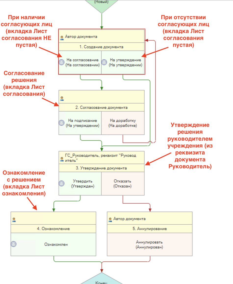 Схема маршрута подписания документа по ЭДО представлена ниже