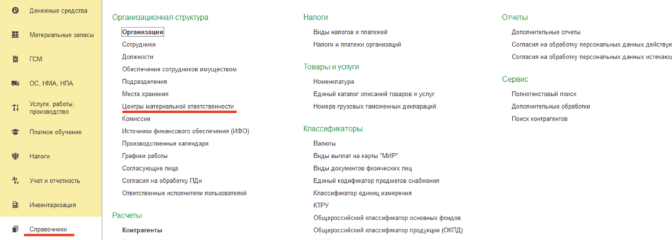 После заполнения следует обратить внимание на столбец Место инвентаризации(3). Если в какой-то из строк он не заполнен, необходимо зайти в раздел СправочникиЦентры материальной ответственности