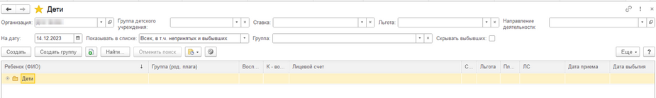 Далее перейдем к справочнику Дети. В данном справочнике представлен список всех детей, зачисленных в группы.