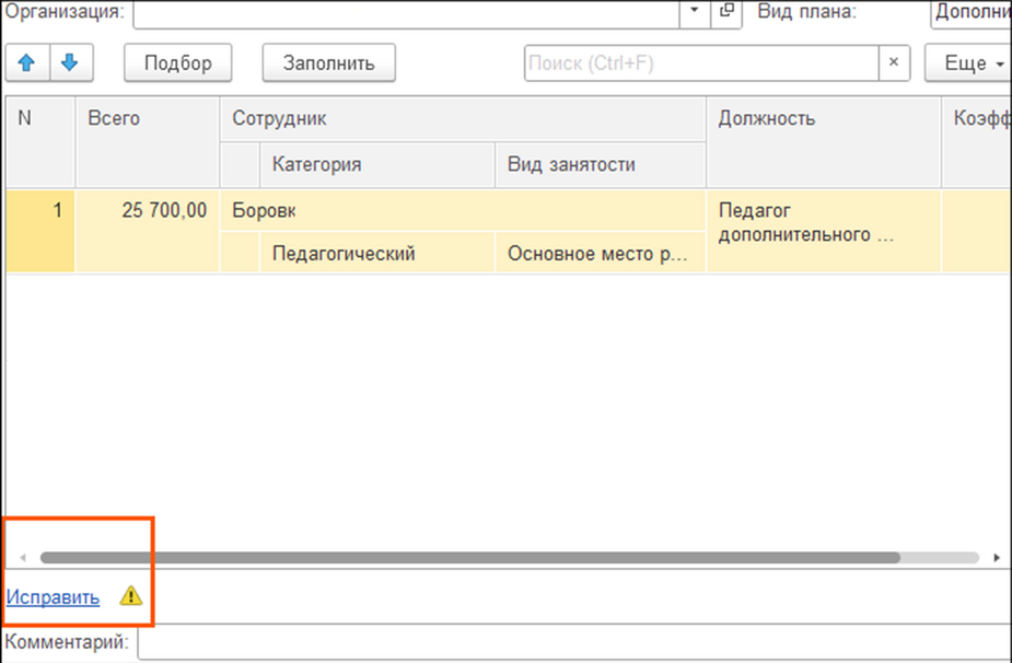 Перетарификация ДОП производится созданием нового документа "Тарификация ДОП" в разделе "Тарификация" → "Тарификация ДОП " → "Создать". Далее: если нужно перетарифицировать несколько сотрудников → нажимаем на кнопку "Подбор" и выбираем необходимых сотрудников; если перетарификация должна коснуться всех сотрудников → нажимаем кнопку "Заполнить", в табличную часть «Начисления» попадут действующие у сотрудников надбавки. Так же, как и в первичной «Тарификации ДОП», меняем надбавки и не забываем за документ перерасчета заработной платы. ВАЖНО ПОНИМАТЬ, что перетарификация (изменения) на один и тот же день, не может быть сделана просто созданием нового документа т.е., если тарификация создана 01.01.2024 года, то ее следующее изменение может быть не ранее 02.01.2024 года, но, если вам нужно перетарифицировать сотрудника на дату, на которую уже есть «тарификация ДОП», вам нужно зайти в старый документ и нажать кнопку «Исправить» (рис. 3).