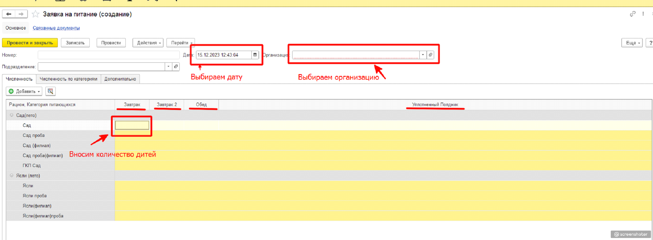Заполнение заявки на питание (рис.3)